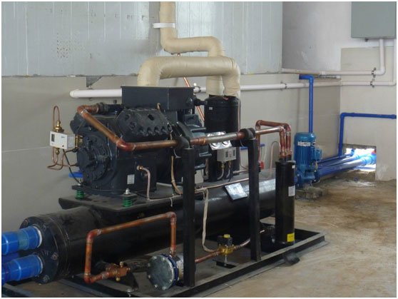 谷輪低噪音水冷機組采用谷輪壓縮機及雄峰低噪音水冷冷凝器組合而成,通過加大冷凝器靜壓箱,及采用大水量、低轉(zhuǎn)速風(fēng)機以達(dá)到降低噪音的效果。適用于超市冷柜、立柜、島柜、地處居民區(qū)的冷庫等降噪要求比較高的制冷工程。